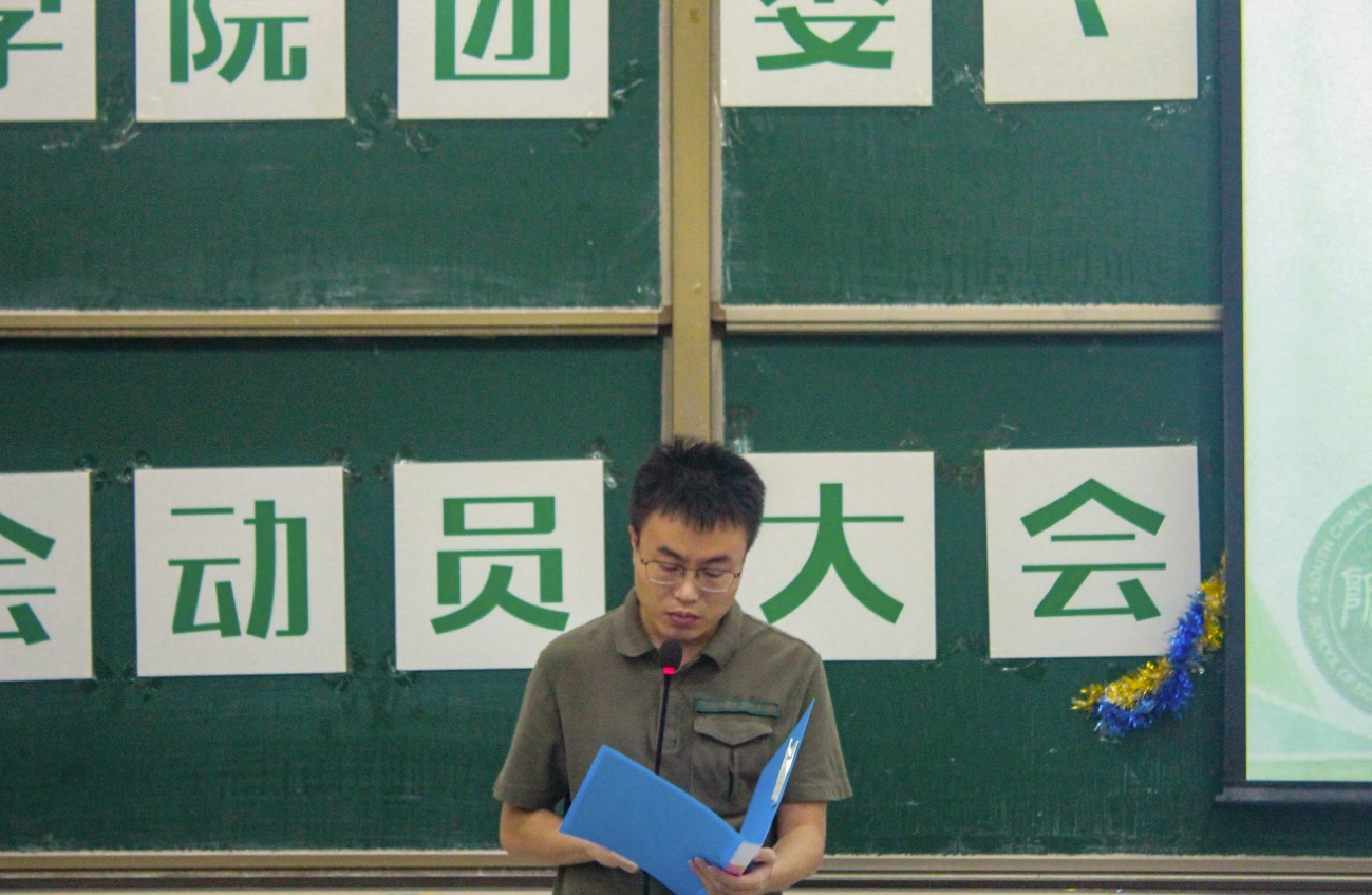 接着由简宪堃老师为本次大会致开幕辞。简宪堃老师在致辞中对太阳成集团tyc411团委、员工会经过层层面试后新到来的成员给予衷心的祝贺,也对太阳成集团tyc411各部门工作给予肯定,并提出了应以“源于同学,服务同学”为宗旨、加强个人总结与反思、有团队合作意识、敢于应对挑战等多点建议。